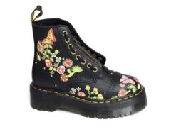 Les imposantes chaussures montantes Sinclair sont un des modèles phares de la marque anglaise Doc Martens. Elles se déclinent ici dans une version fleurie avec les Sinclair Bloom. On y retrouve un zip amovible sur le dessus de la tige, une surpiqûre jaune et de nombreux détails emblématiques de Dr. Martens.