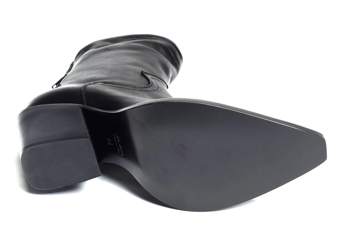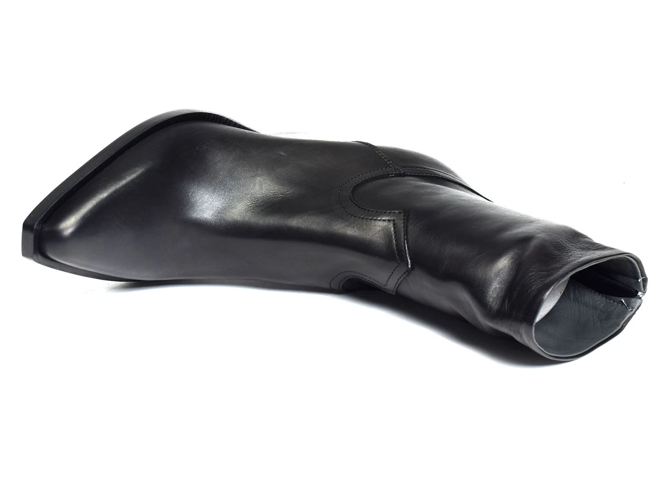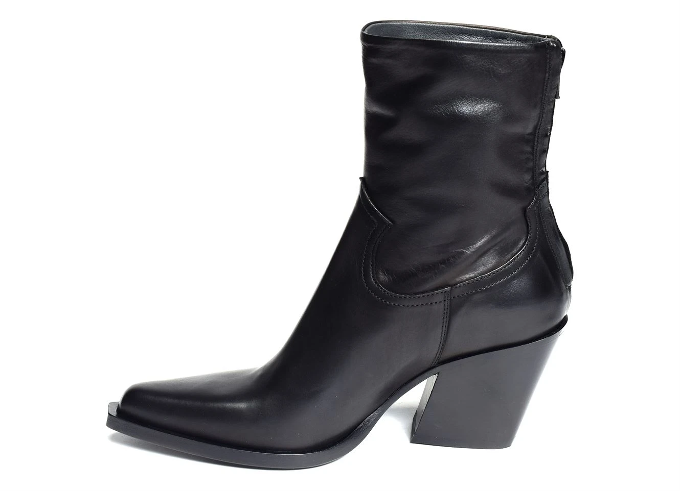 Solide, cette bottine est conçue intégralement en cuir. Elle est dotée d’une fermeture éclair à l’arrière du pied qui donne une finition élégante à cette chaussure tout comme son bout pointu ou encore son talon asymétrique.
