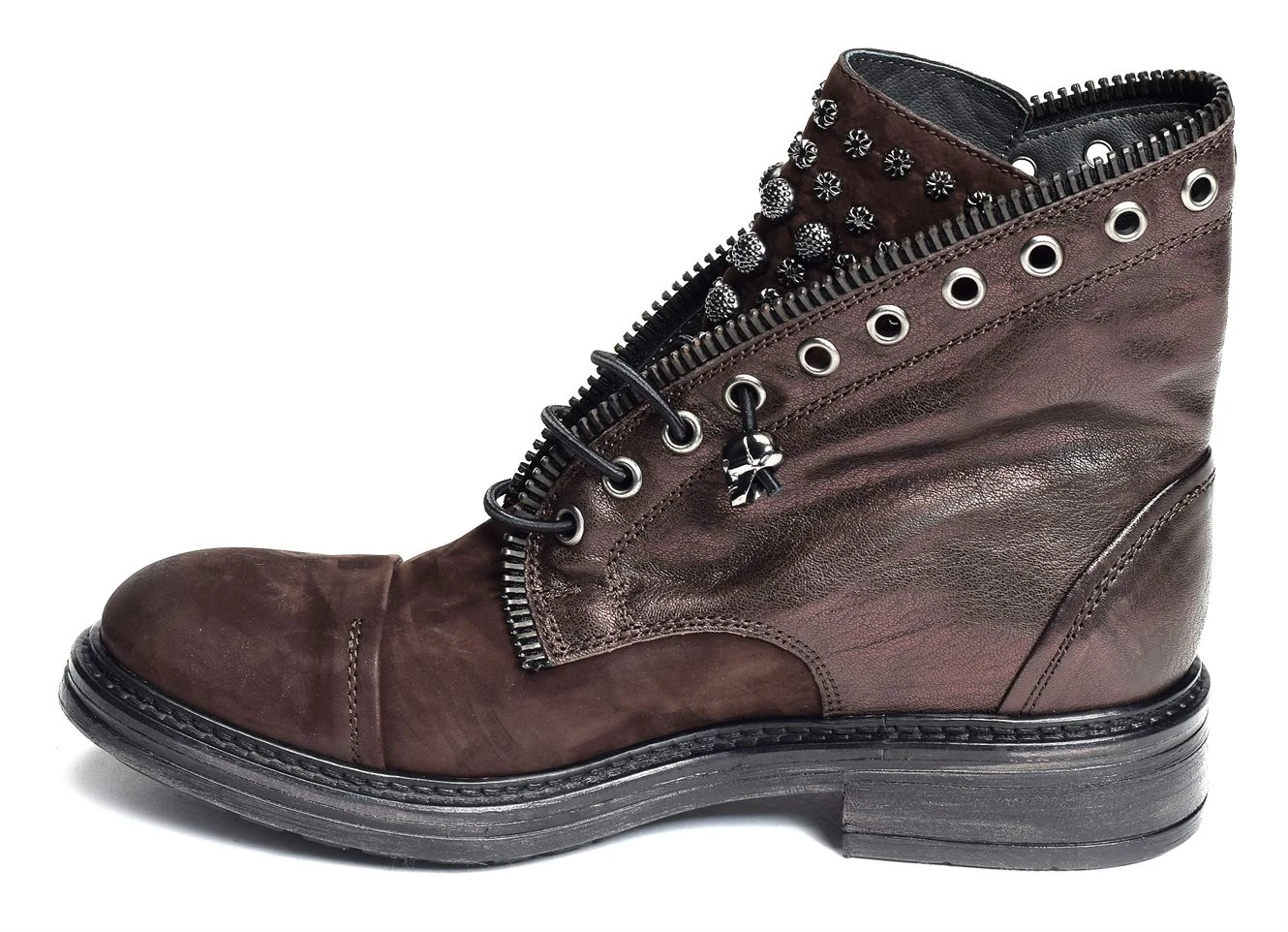Pour le côté rock, vous n’avez qu’à observer le zip présent sur l’ouverture de la chaussure, les nombreux oeillets ou encore la languette ornée de pièces métallisées!