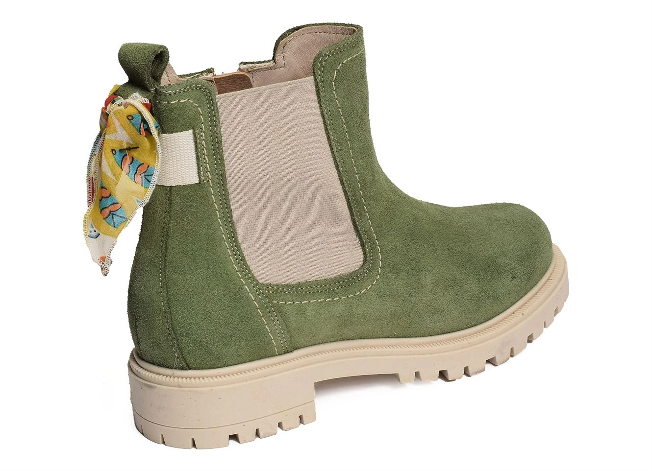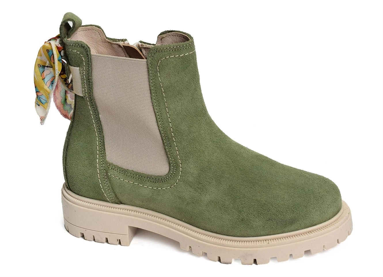 Cette jolie paire de bottines est légère, confortable et agréable à chausser. Elle est dotée d’un petit foulard noué à l’arrière.
