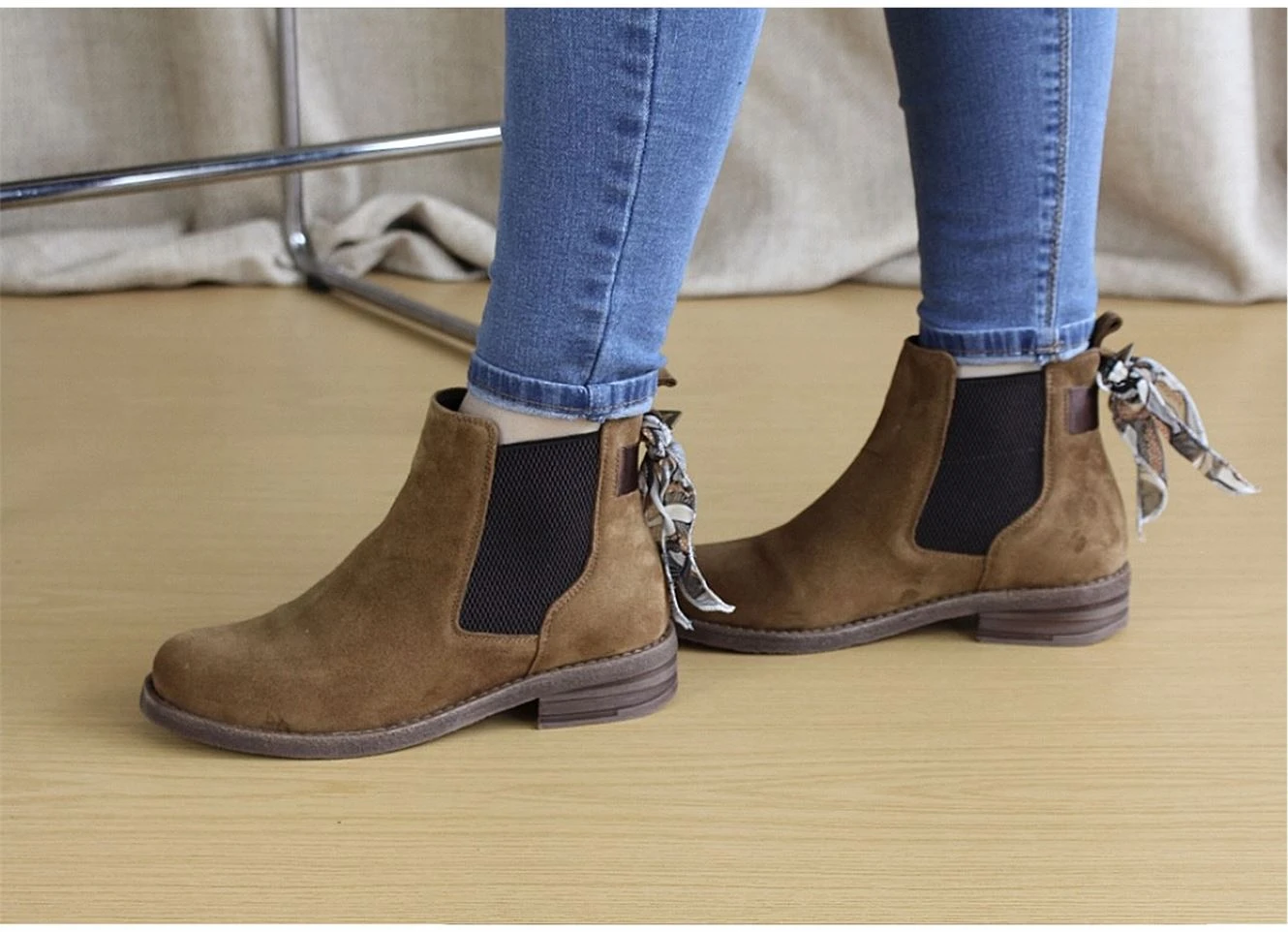 Cette jolie paire de bottines est légère, confortable et agréable à chausser. Elle est dotée d’un petit foulard noué à l’arrière.