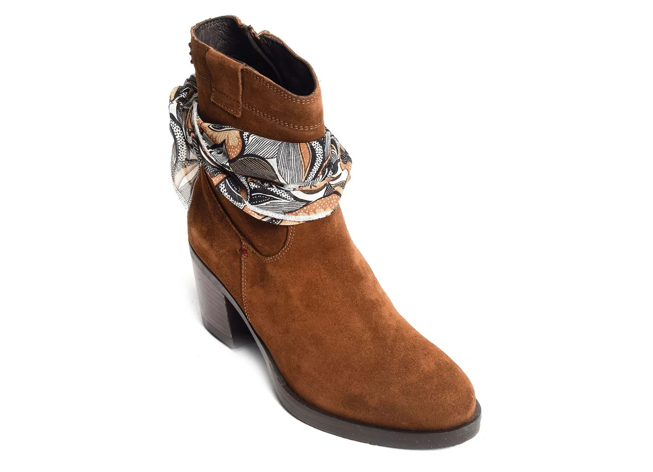 Cette jolie paire de bottines est légère, confortable et agréable à chausser. Elle est dotée d’un petit foulard noué autour de la cheville.