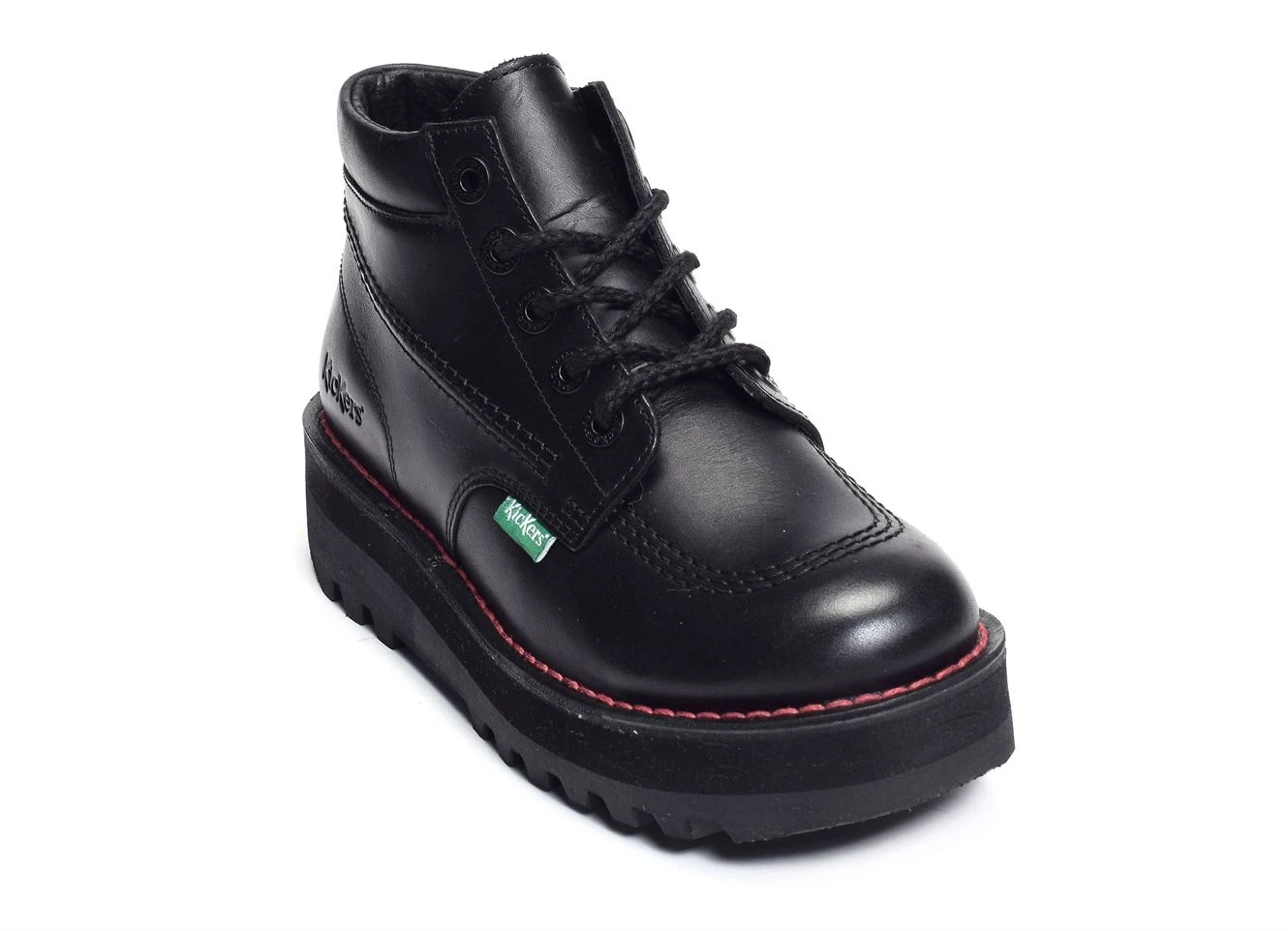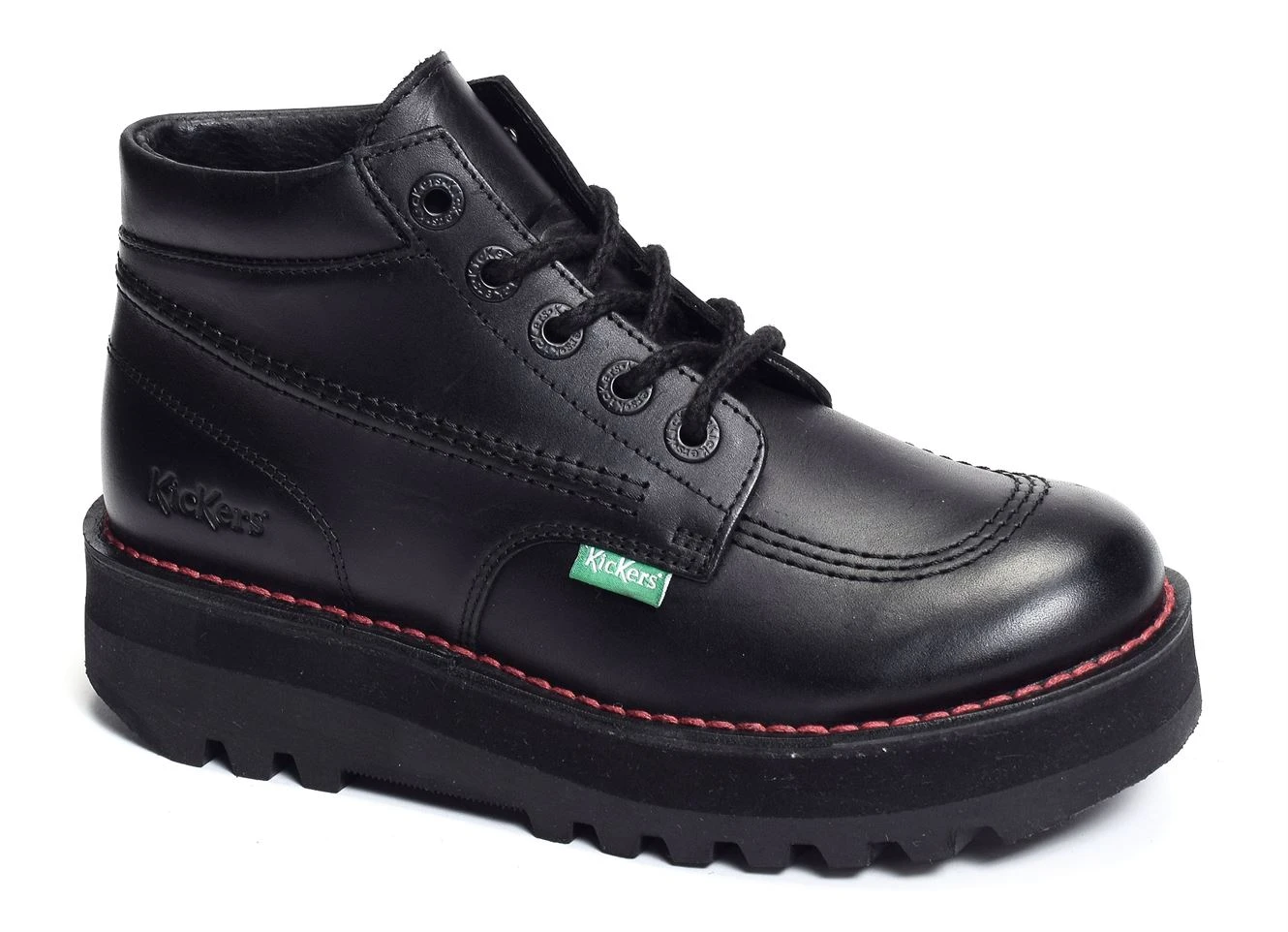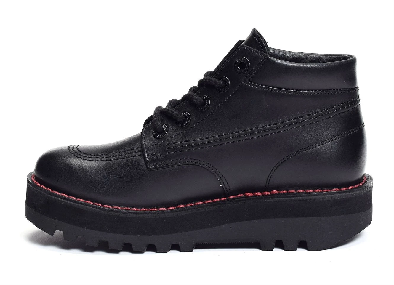 La Kickplatform de Kickers est une chaussure montante destinée aux femmes. Conçue entièrement en cuir, cette chaussure est dotée d’une semelle en caoutchouc pour vous assurer un confort de marche optimal. Sa fermeture à lacets vous permettra d’ajuster parfaitement le modèle à votre pied.