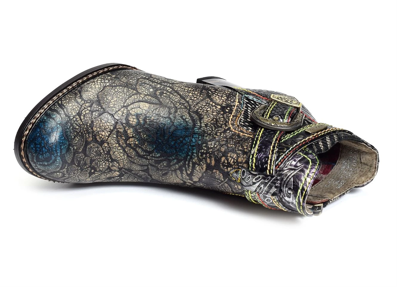 Avec un mélange de cuir effet croco et motifs, cette bottine sera votre allié pour la saison.