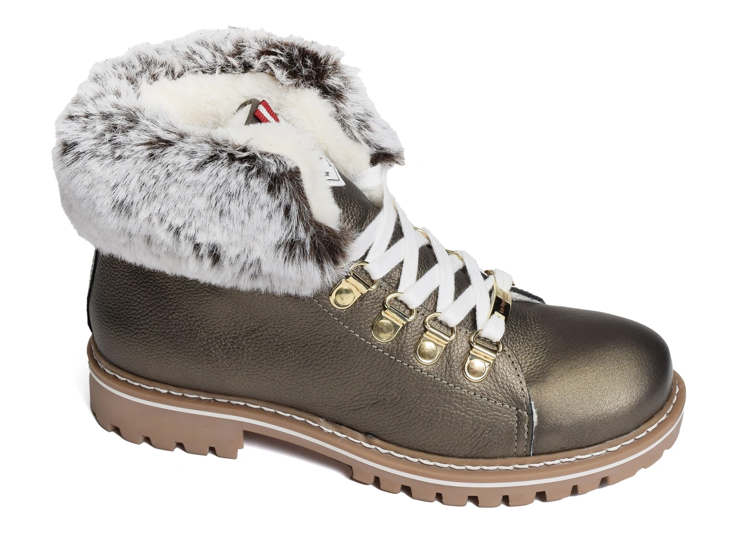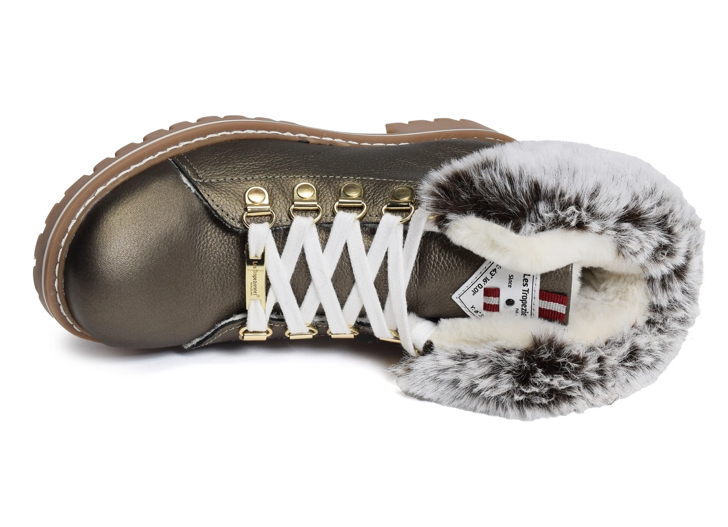 Boots montagne fourrée, le modèle Lacen de la marque Les Tropeziennes en cuir est muni d’un col en fourrure synthétique.