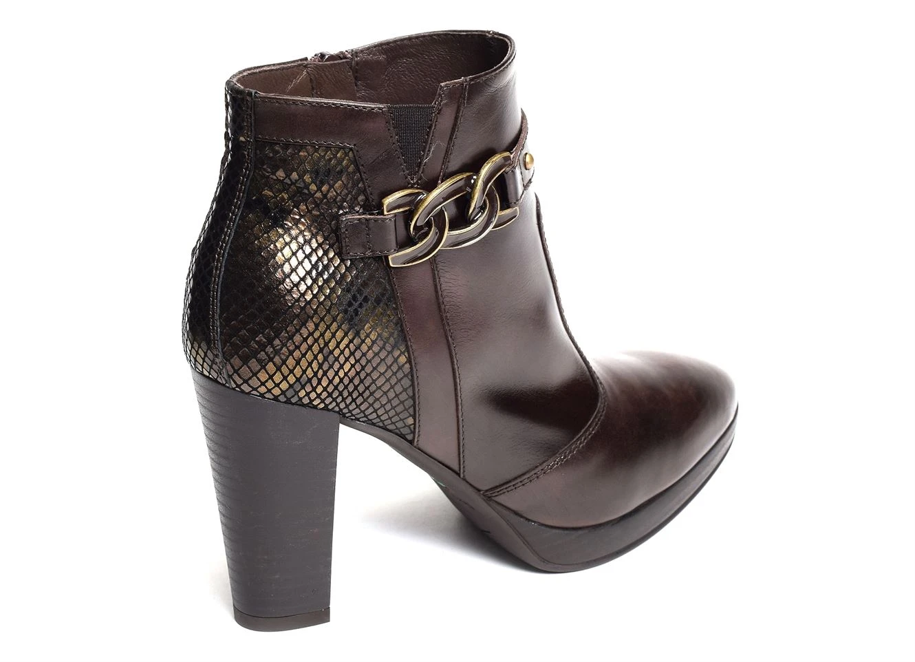 Sobre, elle possède une chiane métallique décorative qui apporte la féminité recherchée dans chacune de vos tenues. Son talon de 9cm avec plateau vous assure une démarche féminine et une silhouette élancée.