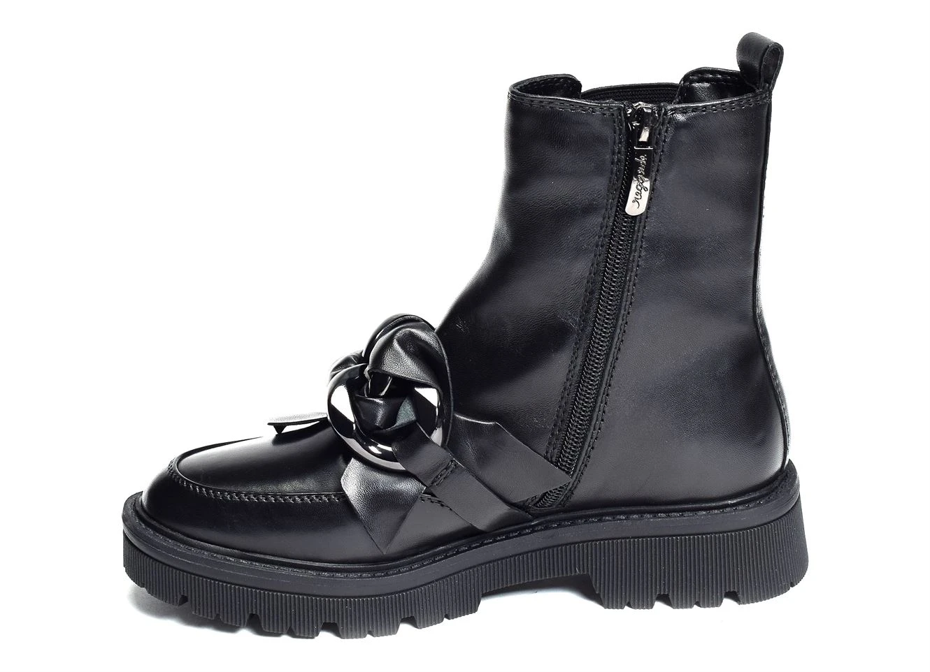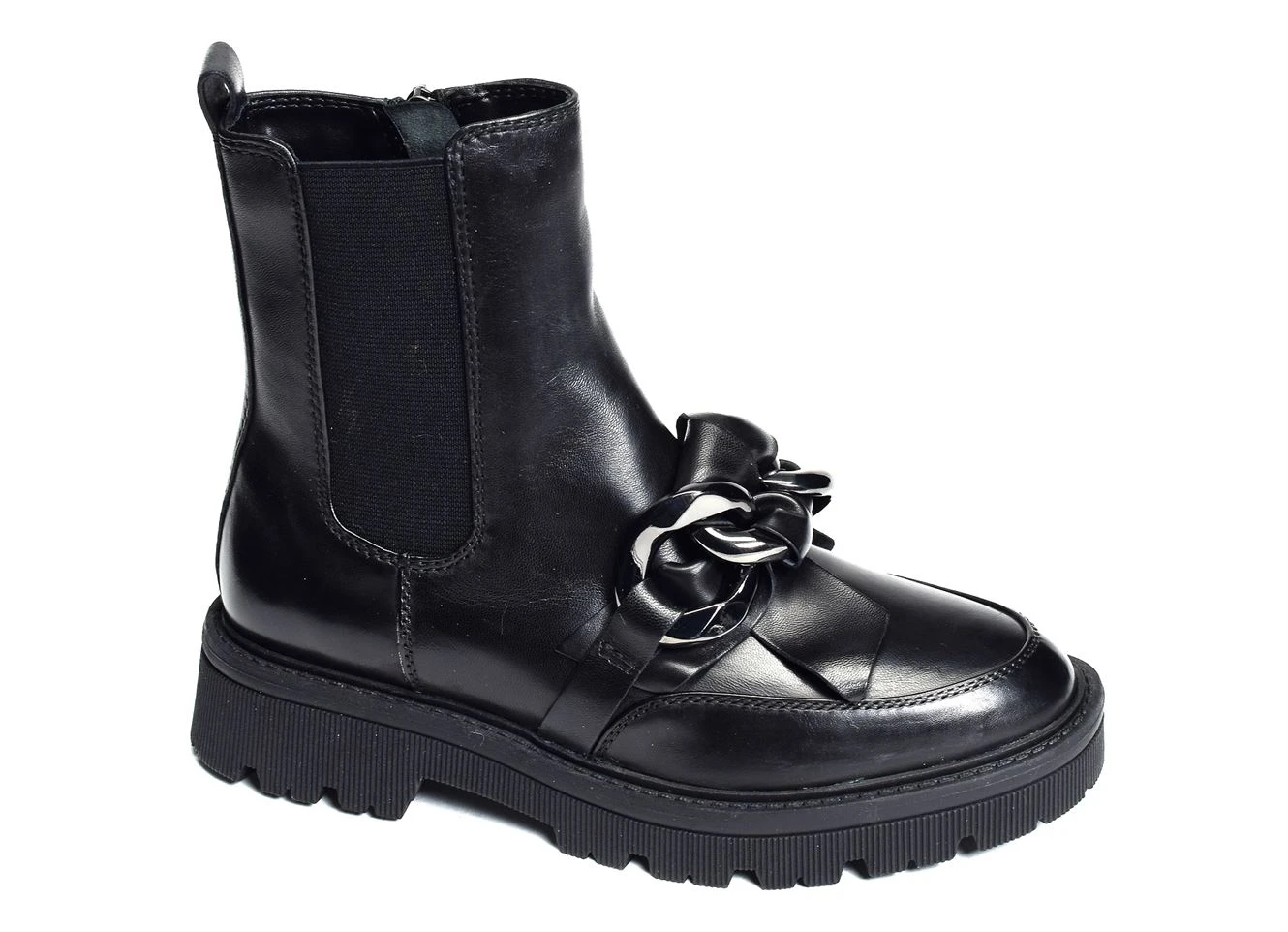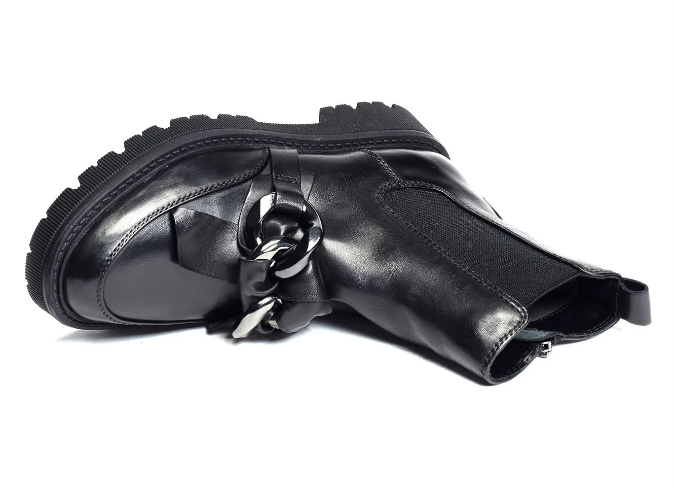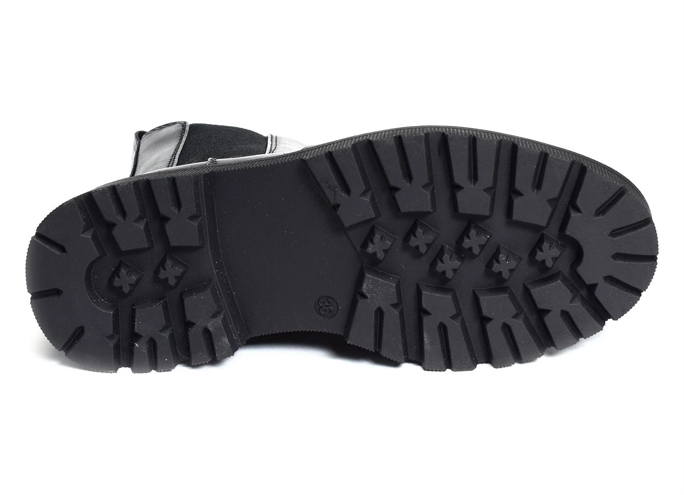 La Dalia 02 est une bottine à caractère de la marque Regarde le ciel. Elle est dotée d’une épaisse semelle crantée qui permet d’élancer la silhouette. Une pièce métallique recouvre le cou-de-pied. Cette chaussure est dotée d’une double fermeture: un zip qui permet d’enfiler facilement la chaussure, ainsi que un élastique qui permet à la chaussure de s’adapter à votre pied.