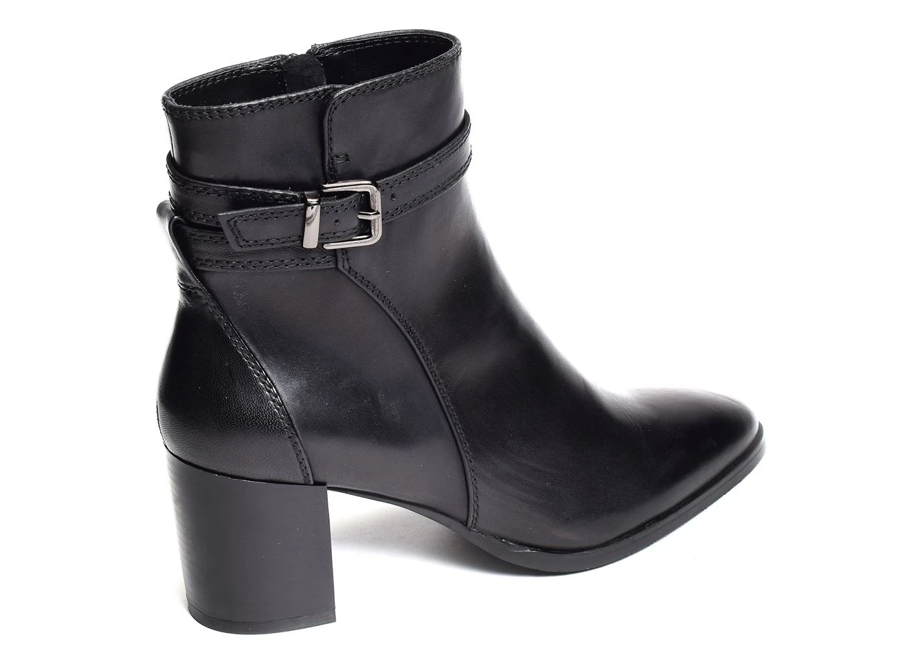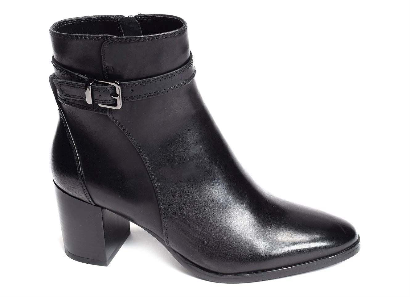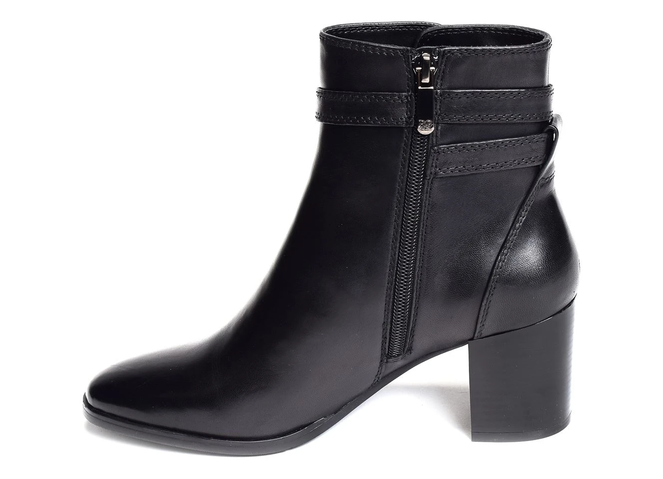 Son talon est légèrement haut, et carré afin de vous garantir une stabilité et un confort tout au long de la journée, tout en restant sylée. Cette bottine est dotée d’une fermeture éclair qui permet d’enfiler et retirer la chaussure sans difficulté. Une boucle orne le côté extérieur du pied, apportant ainsi un détail métallisé à la chaussure.