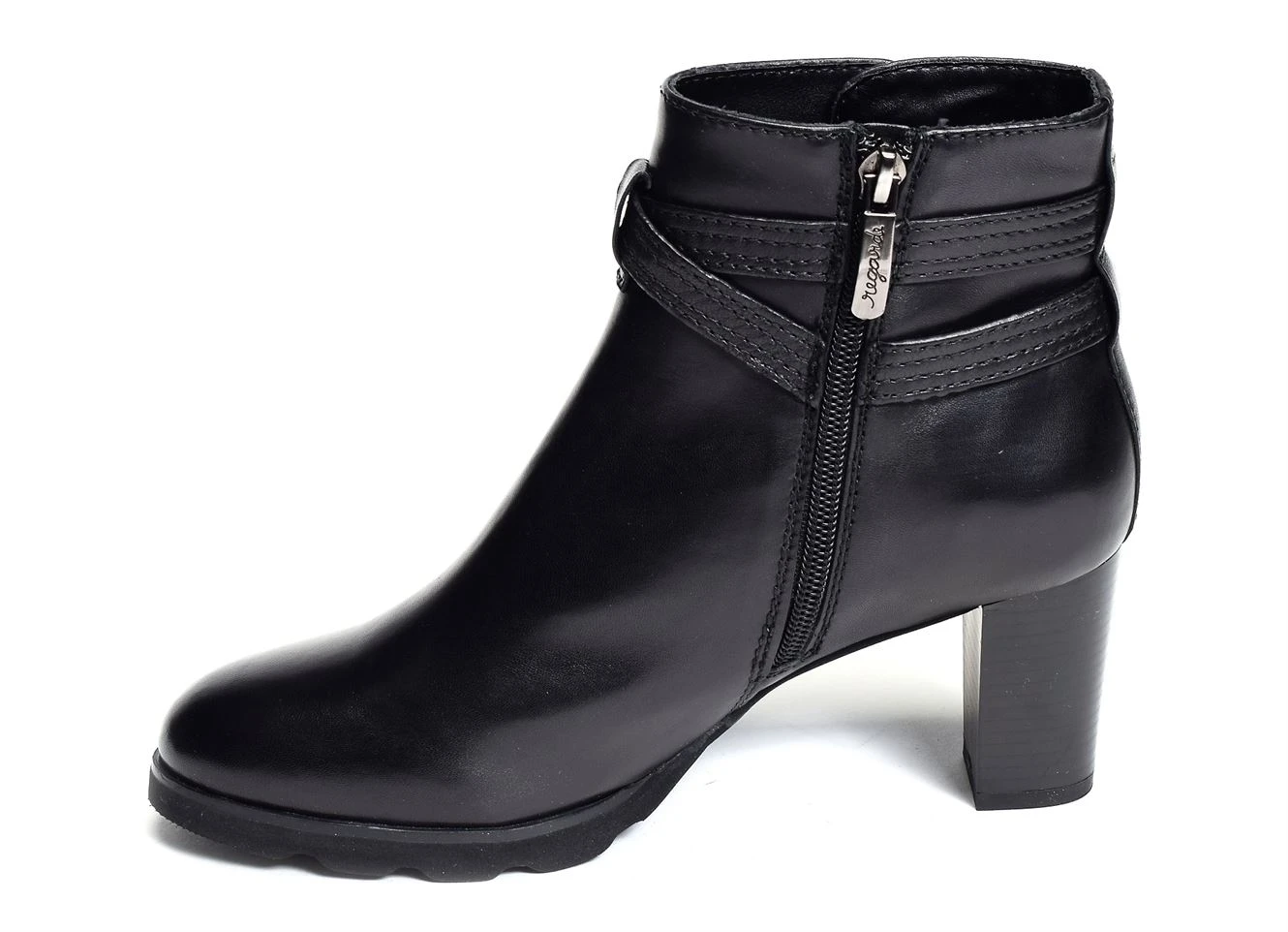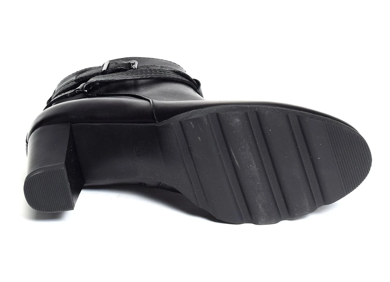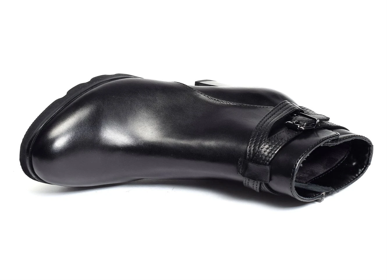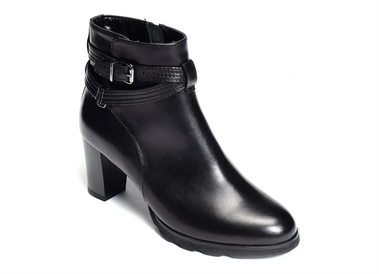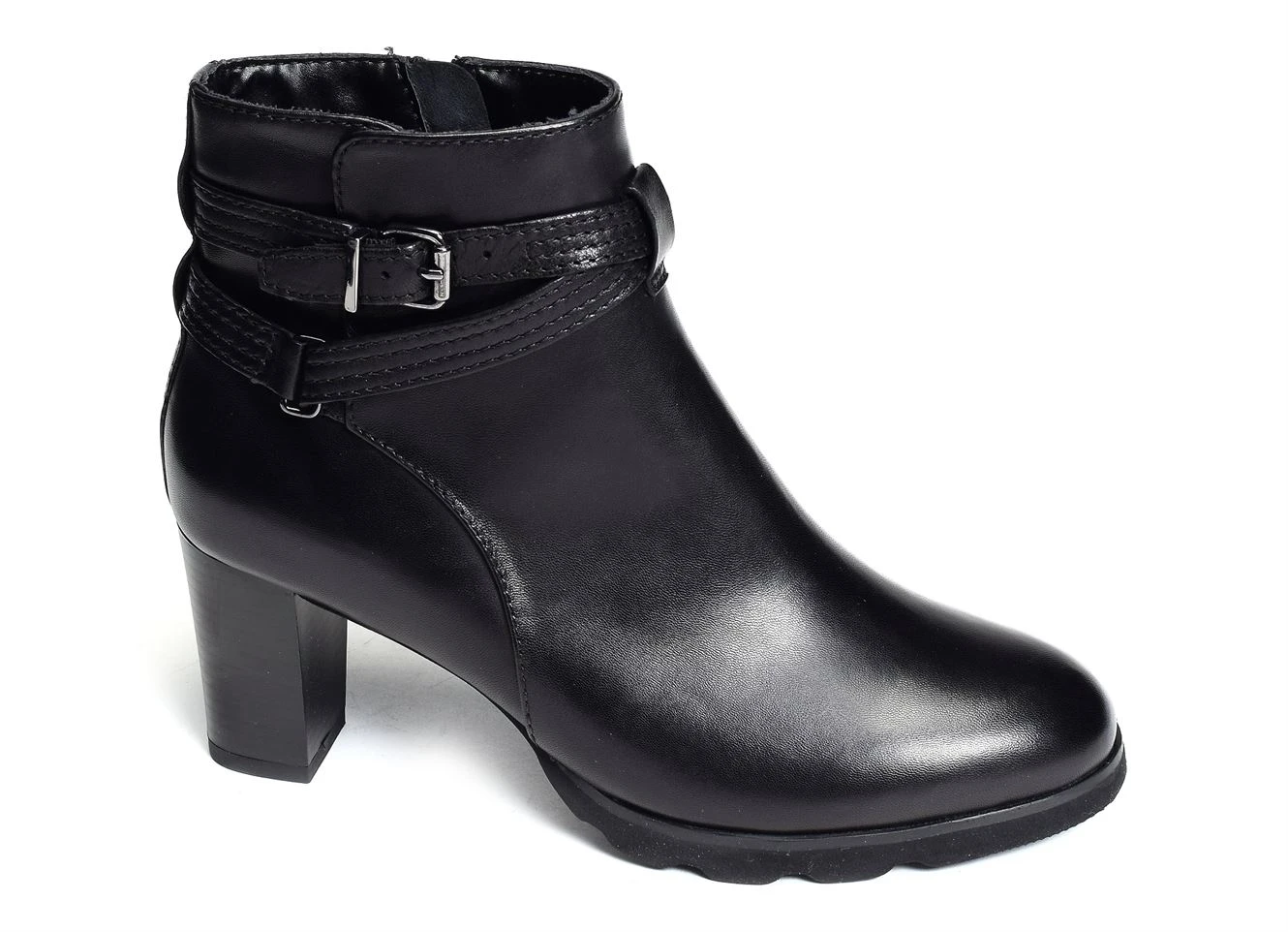 Le talon est épais, ce qui permet ainsi d’élancer la silhouette tout en restant stable, confortable et stylée. La tige est en cuir lisse, et une lanière en cuir entoure la cheville se refermant par le biais d’une boucle métallique.
