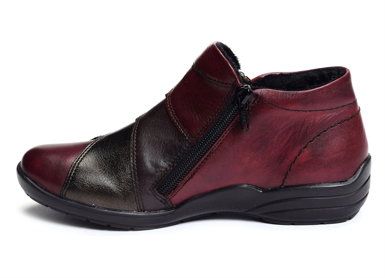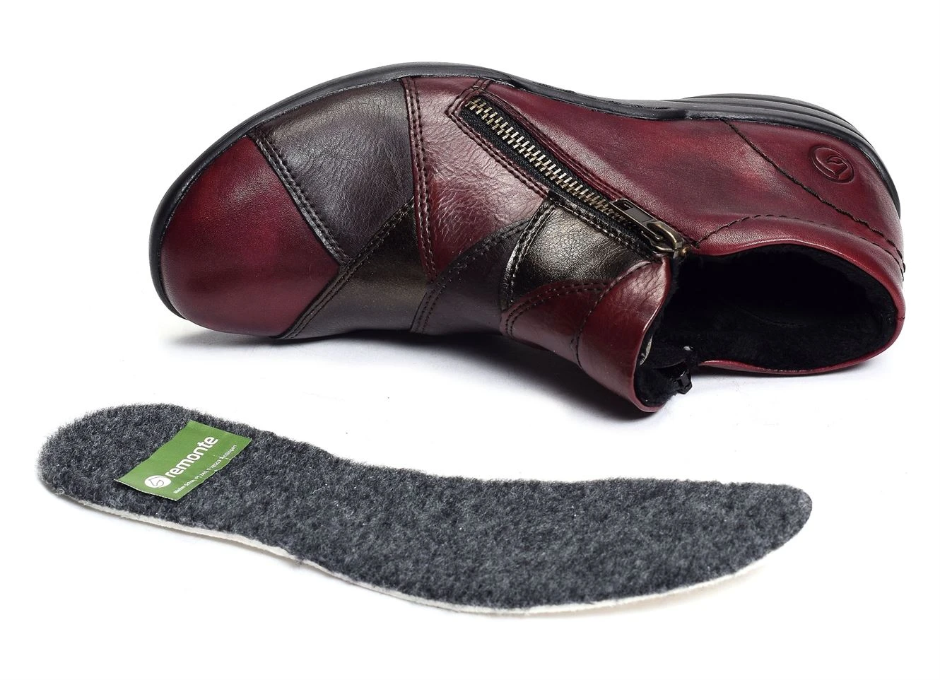 La R7674 est une bottine pour femme de la marque Remonte. Moderne, elle dispose de différents empiècements en cuir aux couleurs nuancées. Elle arbore un style très décalé qui donnera la pointe d’originalité à vos tenues. Cette bottine se porte idéalement avec des vêtements du même style. Elle peut vous accompagner au bureau et durant les événements élégants. Sa fermeture à zip est très facile à manier.