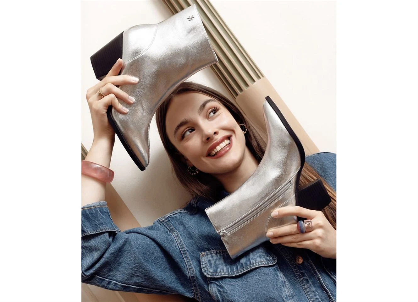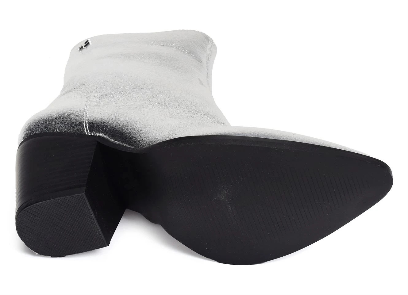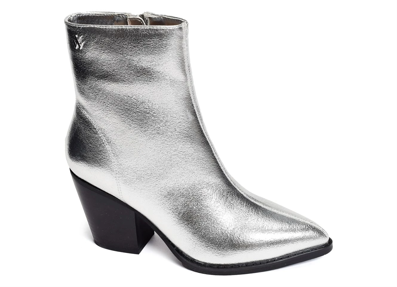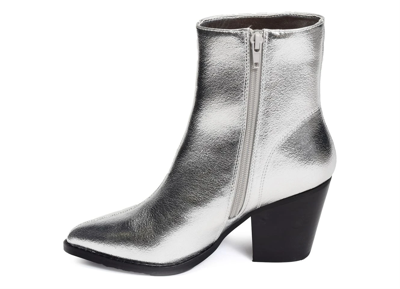 Elle possède un style santiag assuré. Son bout pointu et sa tige métallisée effet texturé donnera une touche féminine à votre look.